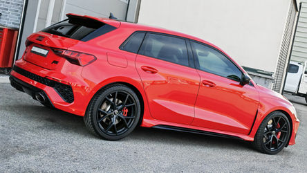 L'Audi RS3, déjà redoutable de série avec son mythique 5-cylindres, atteint une dimension supérieure lorsqu'elle passe entre les mains d'ABT. Cette préparation sublime non seulement les performances mécaniques, mais renforce également l'agressivité esthétique du véhicule avec des appendices aérodynamiques spécifiques.