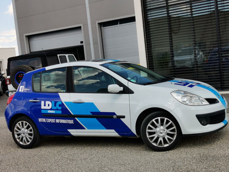 L'objectif était de transformer cette Clio en un support publicitaire dynamique et professionnel : assurer la fidélité parfaite du Bleu LDLC et la lisibilité irréprochable des logos et informations, essentielles pour la signalétique urbaine.